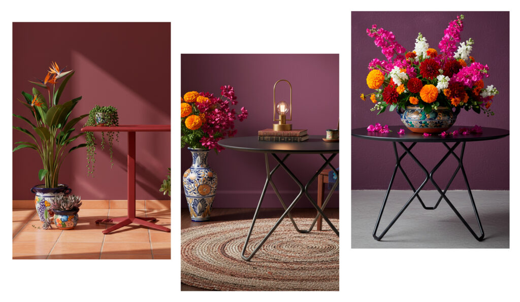 - Terraza con estilo: lleva el juego monocromático al exterior con la Silla Nuta y la Mesa Arket, ambas en el profundo y elegante Borgoña.