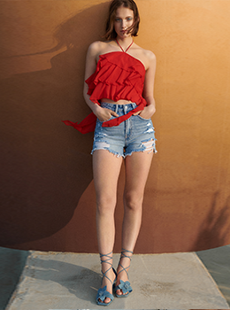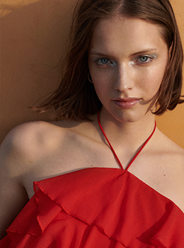 - El color rojo, con toda su fuerza magnética, se presenta en tops y vestidos de tirantes. Este tono, que no deja indiferente a nadie, aporta un toque sensual a los looks y aparece en tejidos fluidos y prendas con volantes muy ligeras y fáciles de combinar. Stradivarius apuesta por el rojo y el denim como apuesta ganadora.