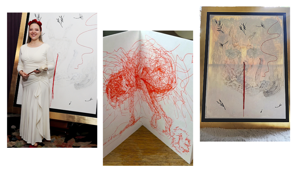 La artista Elisa Salas presentó «Rojo», un performance disruptivo que fusiona caligramas postmodernos con una causa urgente. Una noche donde la élite del coleccionismo se unió para transmutar el trauma en resiliencia colectiva.