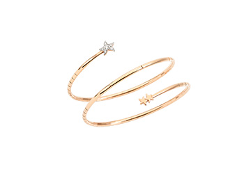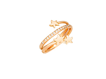 • Anillo en Espiral, una versión aumentada del Star Spiral Ring con tres estrellas centrales. Delicadamente rodearán el dedo con 15 pequeños diamantes aplicados en la banda central. Colócalo en el dedo índice, medio o anular.
