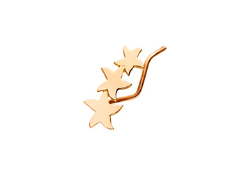 • Pendiente Crawler, su gracioso diseño le permite ascender por el lóbulo con tres estrellas rosas. Sin lugar a dudas es la pieza más edgy de la colección. Se sujeta con un resorte, así que no se caerá.