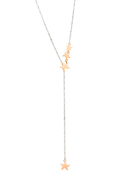 • Collar Stellina, produce un resplandor dentro de lo cotidiano. Regulable en tres medidas distintas. Es sofisticado por las tres estrellas que abrazan el cuello y una que cuelga al final. Prueba a llevarlo en el cabello recogido.