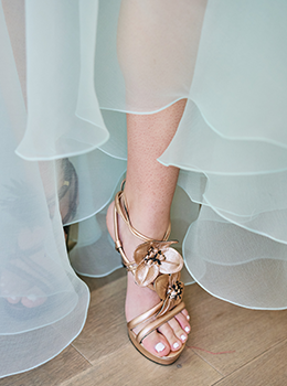 Se seleccionaron cuatro tonalidades metálicas en piel: oro rosado, vino, verde y azul marino. Todos en un espectro de luminosidad elegante y discreta, son la esencia de las sandalias Brigitte & Juliette.