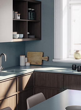 - Apuesta por la versatilidad del azul, seguro que no habías pensado en él para ser tu compañero en la cocina. Será el complemento ideal si seleccionas Silestone® Cala Blue, no es complicado por ello es fácil alternarlo con maderas oscuras como nogal y fresno, así como con metales oscuros para darle un aspecto más clásico. Una apuesta segura que encantará.