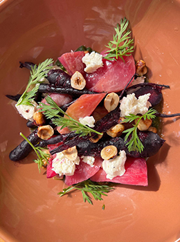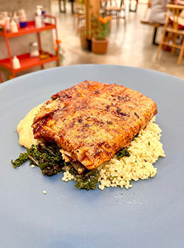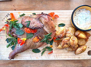 La propuesta de Solar es utilizar solo ingredientes orgánicos locales y de comercio justo, trabajan directamente con los campesinos de la zona y los principales ranchos y huertos. Su menú se basa en las temporadas del año y también en lo que los productores tienen disponible. Además, su panadería ya es considerada la mejor de Valle de Bravo; sus roles de canela y de cacao son una locura. También ofrecen helados hechos en casa, pastas frescas y sándwiches artesanales.