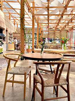 Se encuentra en un hermoso jardín de media hectárea con juegos de madera, especialmente diseñados para el espacio. El lugar fue creado por la directora creativa Diana Rojo, para que los niños pudieran jugar y estar libres mientras los adultos disfrutan de una comida deliciosa.