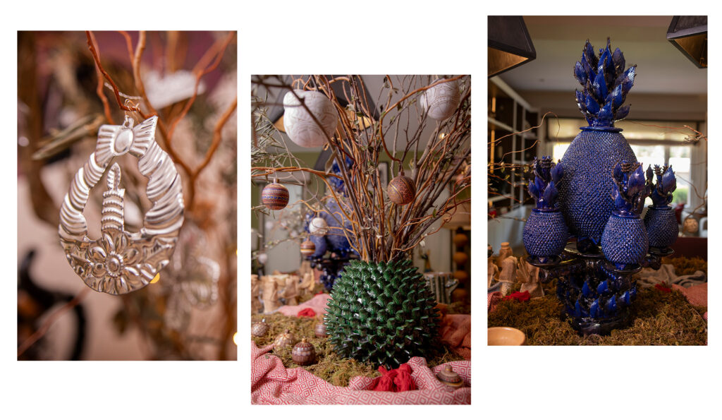 Empecemos por el árbol. Las esferas de guaje de Guerrero son un must. Su esgrafiado y la pintura a mano las convierten en objetos de alta ornamentación, ligeros y duraderos. Son el acento cool y profundamente mexicano que tu espacio necesita.