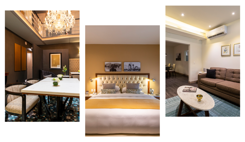 La habilidad del Arq. Armela en combinación con la experiencia y creatividad del equipo de Dominion, arrojaron como resultado un espacio único. Habitaciones amplias y cómodas que resuelven las necesidades del viajero más exigente y lo hacen sentir como en casa ya que todas tienen estancia, cocina, una decoración que combina la modernidad y la esencia Art Decó del espacio, y hasta centro de lavado para aquellos que viajan por períodos más prolongados.