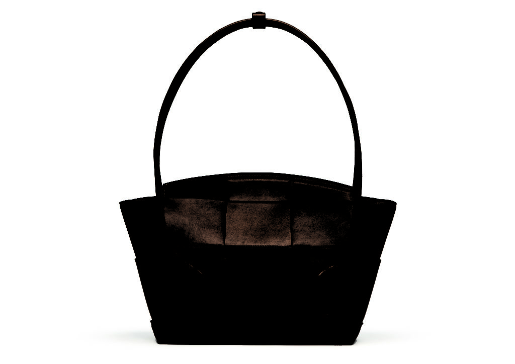 La silueta del bolso Arco posee una increíble calidad arquitectónica, con una solapa en forma de cúpula –retomada en la curva de sus largas y tubulares asas– y una base rectangular de construcción sólida. La naturaleza casual y relajada del bolso Arco oculta su compleja elaboración que requiere más de 100 piezas para su realización.