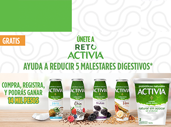 Regístrate en la página oficial reto.activia.com.mx de forma gratuita. Al inscribirte al Reto de 14 días recibirás un plan de alimentación semi personalizado, según el tipo de intestino que tengas, con la posibilidad de recibir una asesoría personalizada a través del chat por parte de su equipo de nutriólogas; así como rutinas de ejercicio, tips de mindfulness para sentirte bien por dentro y por si fuera poco, además de que podrás participar para ganar $14,000 (consulta las Bases).